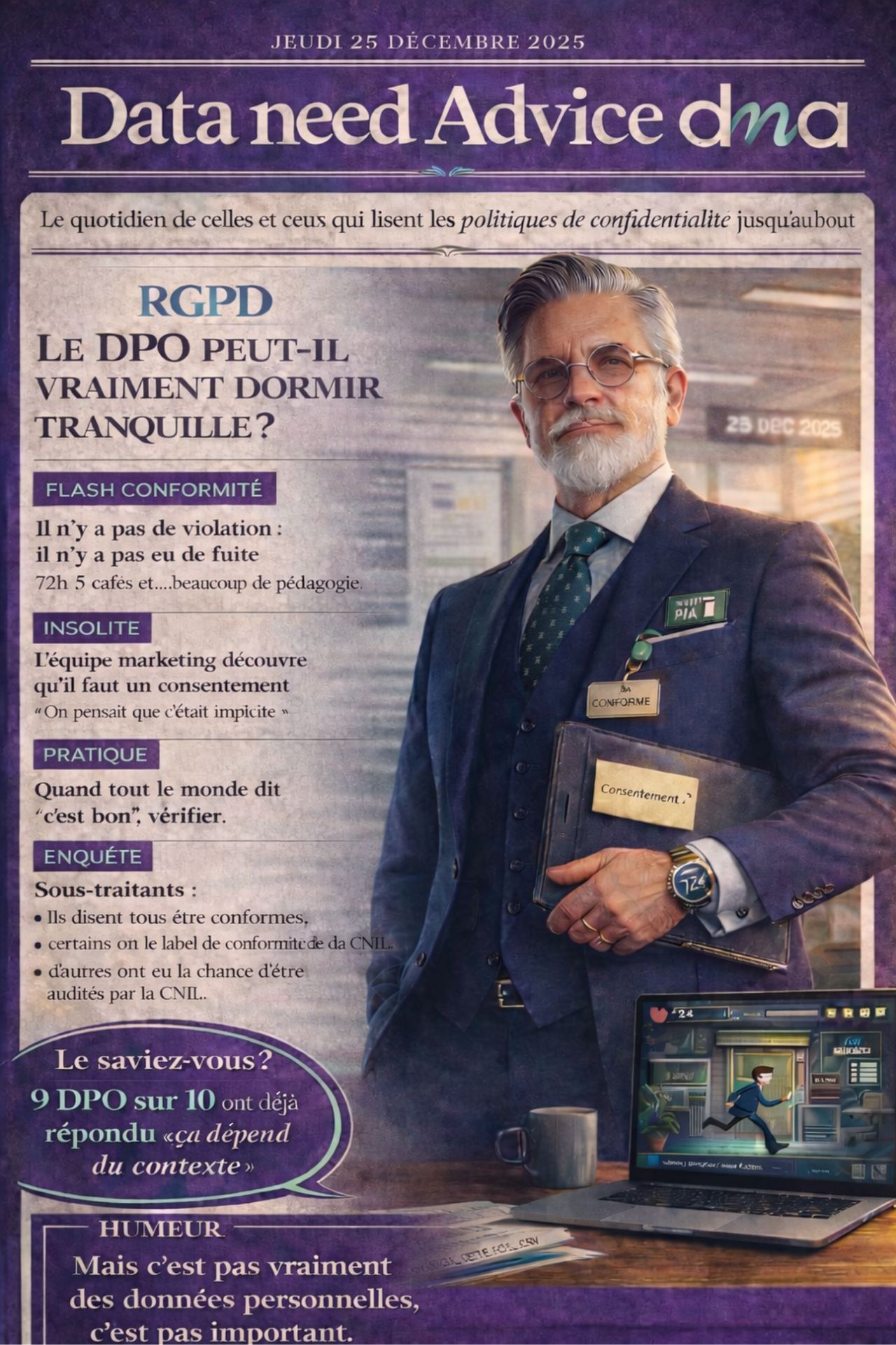 Celle-ci en est une déclinaison volontairement légère et décalée, pensée comme une autre façon de parler du quotidien du DPO : situations familières, défis récurrents, arbitrages permanents, le tout avec humour, évidemment.